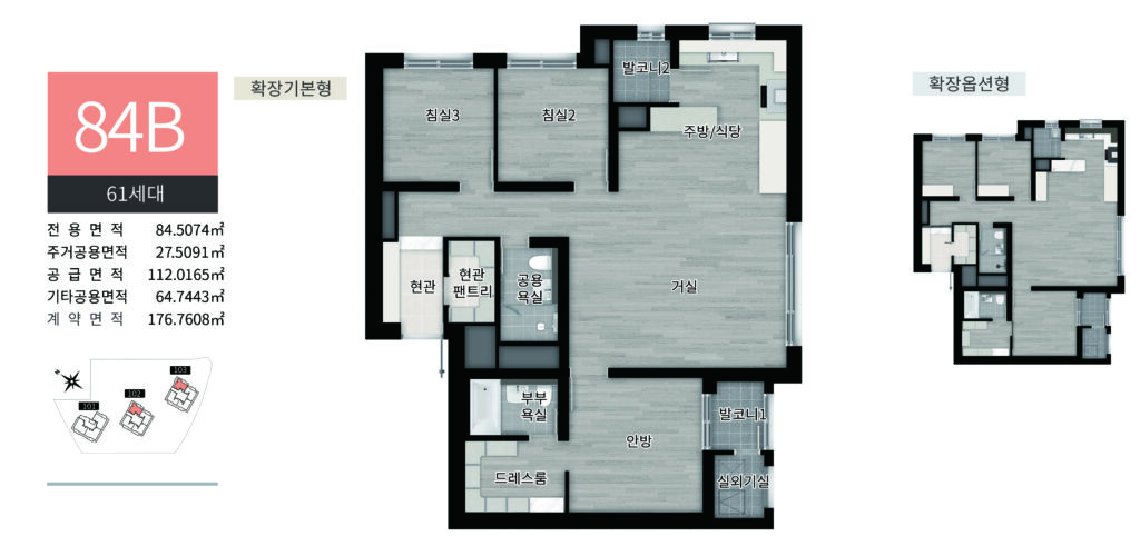 ※ 상기 면적은 공부정리상 약간의 면적증감이 있을 수 있으니, 계약 전 입주자모집공고와 견본주택에서 반드시 내용 확인 후 계약하시기 바랍니다.
